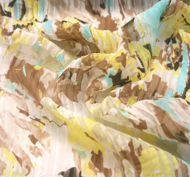 Chiffon Crinkle Print D#849-13132 Taupe/Yellow Width 53" Apparel Fabric
